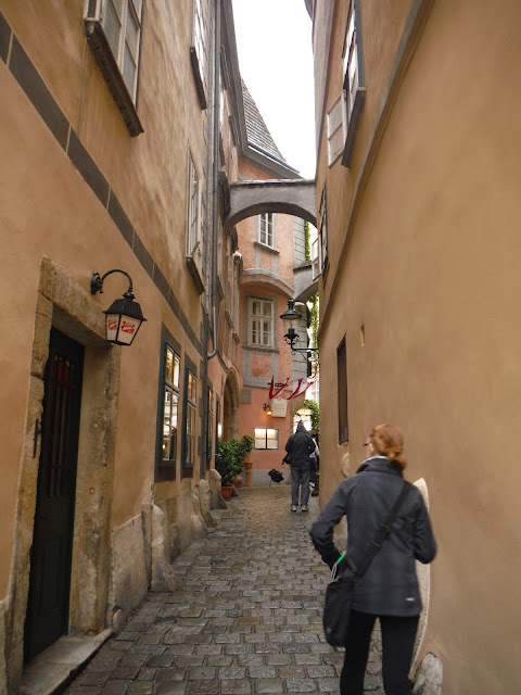After that, we started off on two walking tours we had planned. The first one took us around "medieval Vienna", and the second walked around "imperial Vienna". Here is Isabel standing near Graben street, one of the many fancy pedestrian walkways in the Inner City.